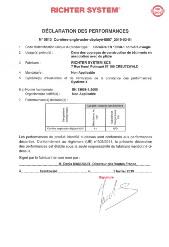 Certifications des ossatures métalliques et profilés pour enduits